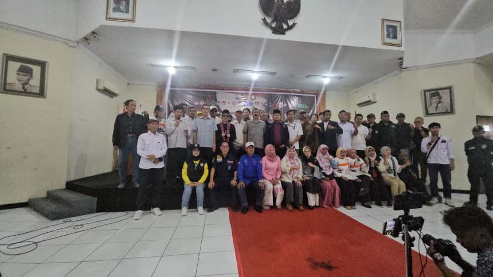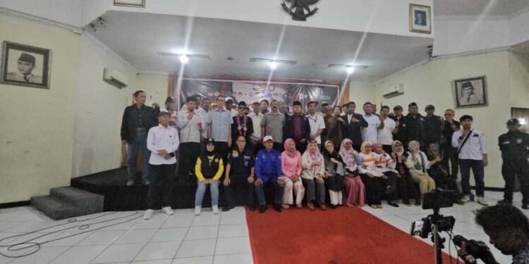 Gambar: Forum Alumni Badan Eksekutif Mahasiswa Republik Indonesia (FABEM RI) bersama jaringan Gabungan NGO Indonesia menggelar deklarasi nasional “Perang Melawan Korupsi” yang dihadiri oleh berbagai organisasi masyarakat sipil, lembaga swadaya masyarakat, aktivis mahasiswa, dan tokoh muda lintas daerah dalam sebuah acara resmi yang menampilkan foto bersama peserta di ruangan dengan lambang Garuda Pancasila di dinding, menandai komitmen moral kebangsaan untuk memberantas korupsi hingga ke akar-akarnya.