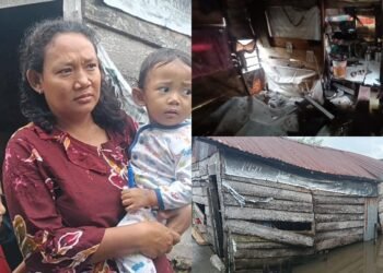 Read moreDetailsGambar: Kolase foto memperlihatkan kondisi Elika Sari (kiri) bersama kedua anaknya dengan raut wajah sedih, serta kondisi rumah mereka di...