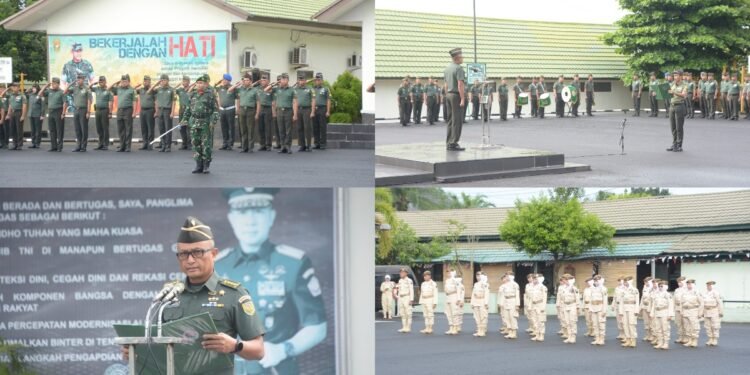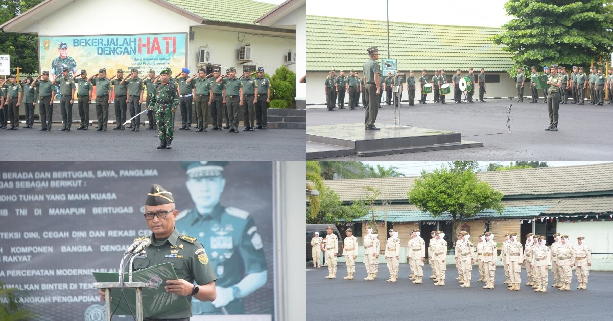 Gambar: Kolase foto menampilkan jalannya Upacara Peringatan Hari Sumpah Pemuda ke-97 Tahun 2025 di Korem 044/Gapo.