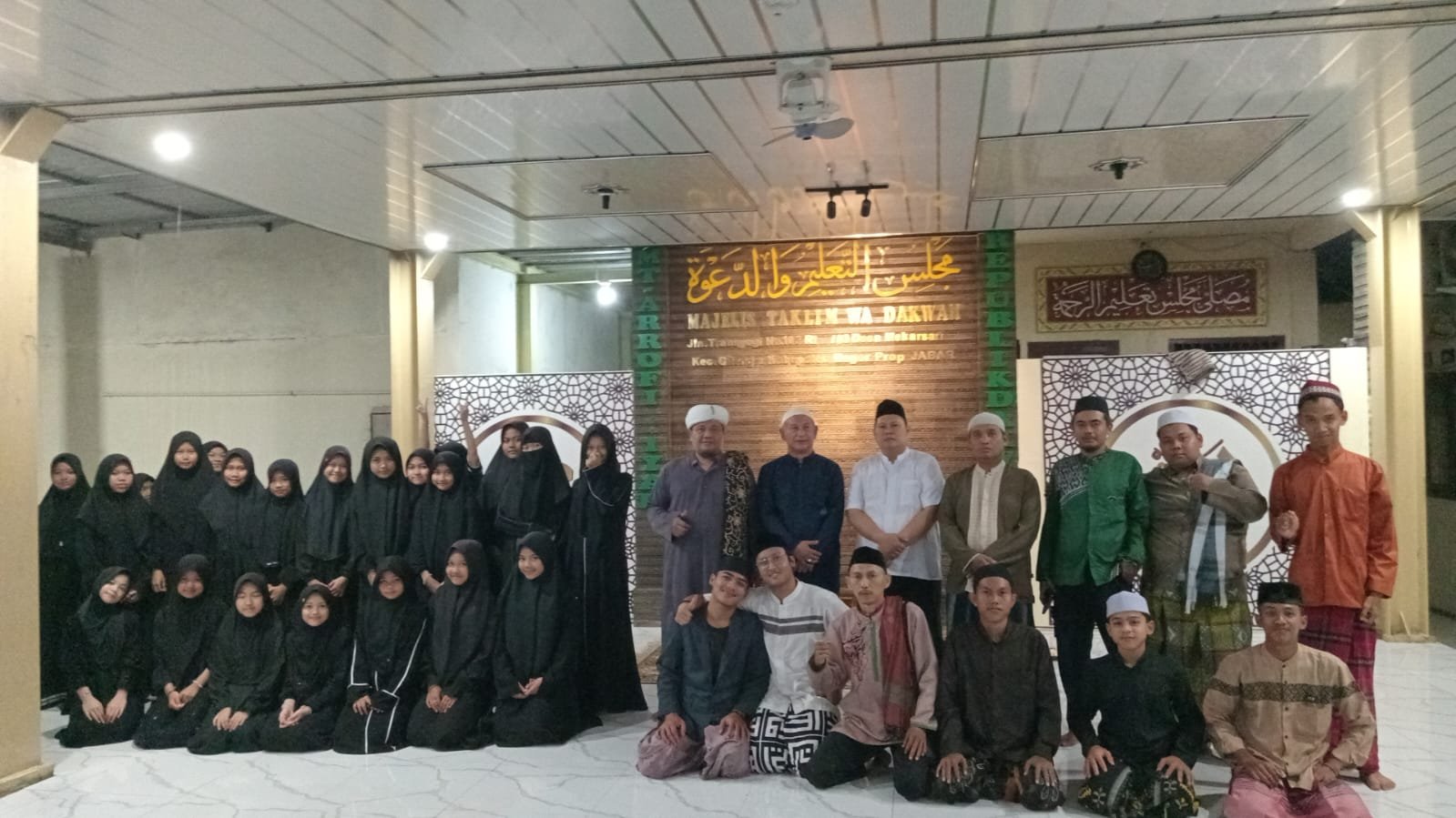 Gambar: Anggota DPRD Kabupaten Bogor, Beben Suhendar, S.E. (berdiri, kelima dari kanan), berfoto bersama pimpinan Ponpes Arrofiiyah Wada’wah, KH. Raden Tatang Tajudin (berdiri, keempat dari kanan), serta para santri dan jamaah usai mengikuti kajian rutin di Cileungsi, Bogor, pada Rabu (1/10/2025) malam.