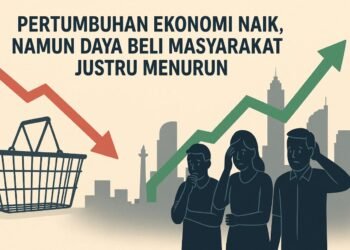Read moreDetailsGambar: Ilustrasi ini menggambarkan paradoks ekonomi di Indonesia, di mana pertumbuhan ekonomi meningkat tetapi daya beli masyarakat menurun. Terlihat grafik ...