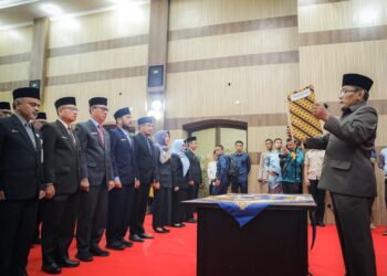 Read moreDetailsGambar: Wakil Wali Kota Dumai, Sugiyarto, saat memimpin pembacaan naskah pelantikan dalam prosesi pengangkatan 21 pejabat Pimpinan Tinggi Pratama (Eselon ...