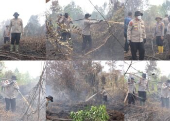 Read moreDetailsGambar: Petugas kepolisian bersama tim gabungan berupaya memadamkan kebakaran hutan dan lahan di kawasan Rimbo Panjang, Kecamatan Tambang, Kabupaten Kampar, ...